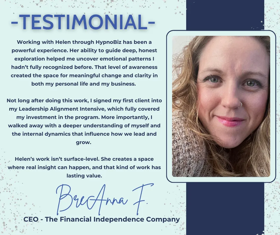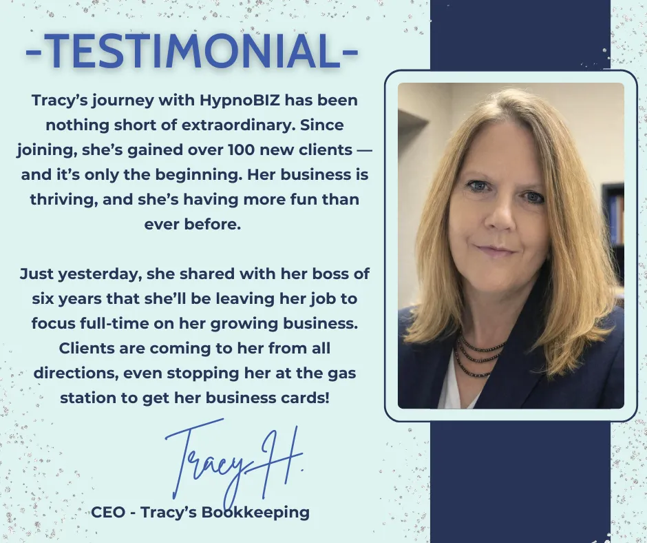 If you’re ready to stop spinning, break the sabotage cycle, and finally step into the business (and life) you know is possible, HYPNOBIZ was built for you.